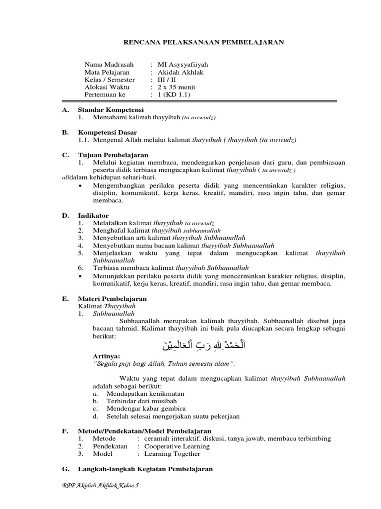 Materi kalimat thayyibah alhamdulillah adalah materi pelajaran aqidah akhlak kelas 2 semester ganjil.
